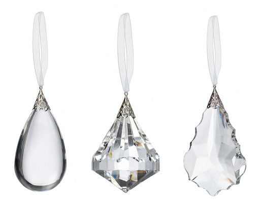 Color: Clear Dimensions: 4" Dia. Jewel 4"Dia.Fancy Mapleleaf 4"Dia.Raindrop 4"Dia.