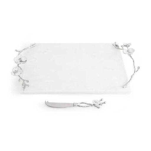Michael AramMATERIALSWhite Marble, Nickelplate, Stainless Steel, White Enamel DETAILSBoard 17.5""L x 10""W x 2.5""HKnife 8""L
