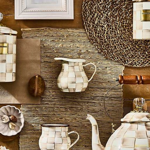 MacKenzie-ChildsProduct Details Dainty only in size, our Mocha Check Little Creamer is a petite companion to our 4-Cup Teapot and Little Sugar Bowl. Made of heavy-...