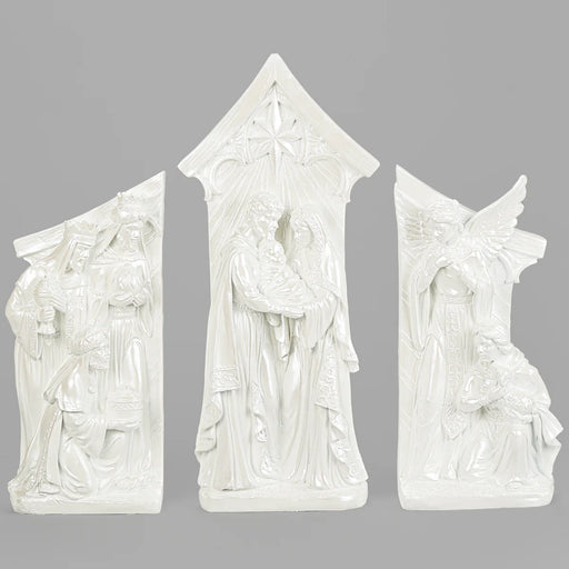 RomanThis nativity set features exquisitely sculpted figures of Mary, Joseph, and Baby Jesus, finished in a luminous white pearlized glaze that reflects...