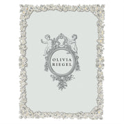 Stunning clusters of hundreds of hand-set clear European crystals in silver or gold finished cast pewter. Elegant moiré silk back with easel for vertical or horizontal placement. Tarnish resistant. Signature luxury gift box included.