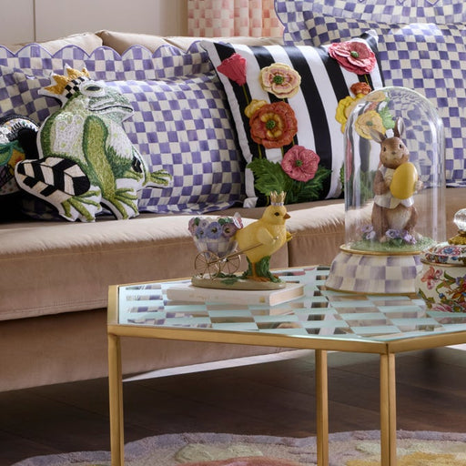 MacKenzie-ChildsDetails Time to hop to work! Our Pansy Party Chick with Cart features a sweet chick with a regal crown pulling an eggshell cart adorned with Viol...