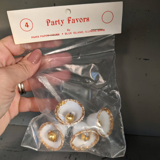 Quirks!Such a great find! New old stock vintage plastic sugar bells with gold glitter. Use them as party favors or holiday ornaments! Sell them by the pac...