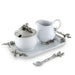 Crafted in elegant stoneware with pure-pewter accents, Vagabond House's Blueberry Creamer Set includes four classic pieces: creamer, serving tray, sugar bowl and sugar spoon.