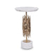 Description A Brutalist-inspired martini table is in brass with a white marble top and base.