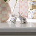 Set the scene for celebration with this white ceramic salt and pepper set that features bunnies accented with hand-applied floral transfers and hand-painted check ears. Presented in a beautiful gift box, this set makes an ideal gift for the salt and pepper shaker collector, who might also happen to be your favorite host.
