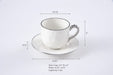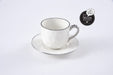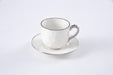 Espresso Cup and Saucer from our Salerno Collection. Beautifully crafted in a stunning white porcelain with a delicate silver beaded handle. Use for a fabulous brunch or delight guests by serving espresso in this gorgeous cup! Dishwasher safe, tarnish free, and stain resistant.