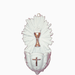 Celebrate your child's First Holy Communion with this beautiful font. Made with high-quality materials, this font features a stunning gold trim that adds a touch of elegance to any room. Measuring 5 inches in height, it is the perfect size to display on a shelf or dresser.