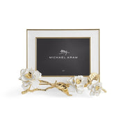 A celebration of romance and refined artistry, the Gardenia Enameled White Frame is handcrafted in goldtone and adorned with sculpted gardenia blooms, each petal delicately enameled by hand. Inspired by the lush beauty of a blooming garden, it elevates your most cherished 5x7 memories with luxurious elegance.