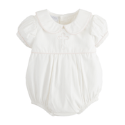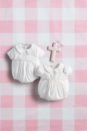This charming embroidered poplin bubble is a delightful addition to any little one's wardrobe. Crafted with meticulous attention to detail, it showcases a classic Peter Pan collar that adds a touch of timeless elegance. The contrast piping enhances the overall design, providing a subtle yet stylish accent. Designed for convenience and comfort, the bubble features inner leg snaps, making diaper changes a breeze. Made from a high-quality blend of 59% polyester and 41% cotton, this piece offers a soft and breathable feel, perfect for delicate skin. Ideal for infants aged 0-3 months, this adorable outfit combines practicality with a touch of sophistication, making it a must-have for any special occasion or everyday wear.