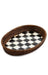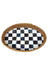 Heavy-gauge, hand-glazed steel tray base with hand-painted Courtly Checks, rimmed in woven rattan. Pieces may vary due to the handmade nature of each product. Imported.
