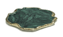A gold rim overlaps the edges of this organic-shaped tray with a malachite finish.