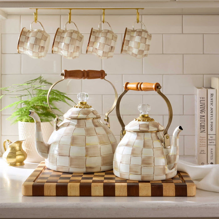 Hearty and handy, our handsome Mocha Check Mug is perfect for a cup of hot chocolate or calming tea. Similar in theme to our signature Courtly Check® enamel pattern, Mocha Check features hand-painted, coffee-colored checks that are rimmed in bronzed stainless steel.