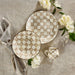 Heavy-gauge, hand-glazed steel underbody with hand-painted Mocha Checks, rimmed in bronzed stainless steel. Pieces may vary due to the handmade nature of each product. Imported.