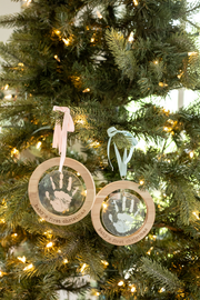 - The Pink Acrylic Handprint Ornament is a 3-piece set