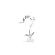 The Silver Orchid Stem Sculpture Small captures the ethereal elegance of orchids in a sculptural form. Handcrafted in nickelplate with hand-enameled blooms and anchored in white marble, each delicate stem evokes purity, grace, and timeless luxury. A refined centerpiece that brings subtle sophistication to any space.
