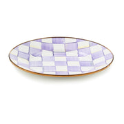 Set a place at the table for our Violet Check Dinner Plate. Similar in theme to our signature enamel Courtly Check pattern, Violet Check features purple checks that are hand-painted and rimmed in bronzed stainless steel.