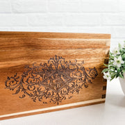 Please note, due to the nature of acacia wood, variations in the coloration of the wood are common, and part of what makes it beautiful! Therefore, we cannot offer exchanges on this item for a different wood pattern/coloration.